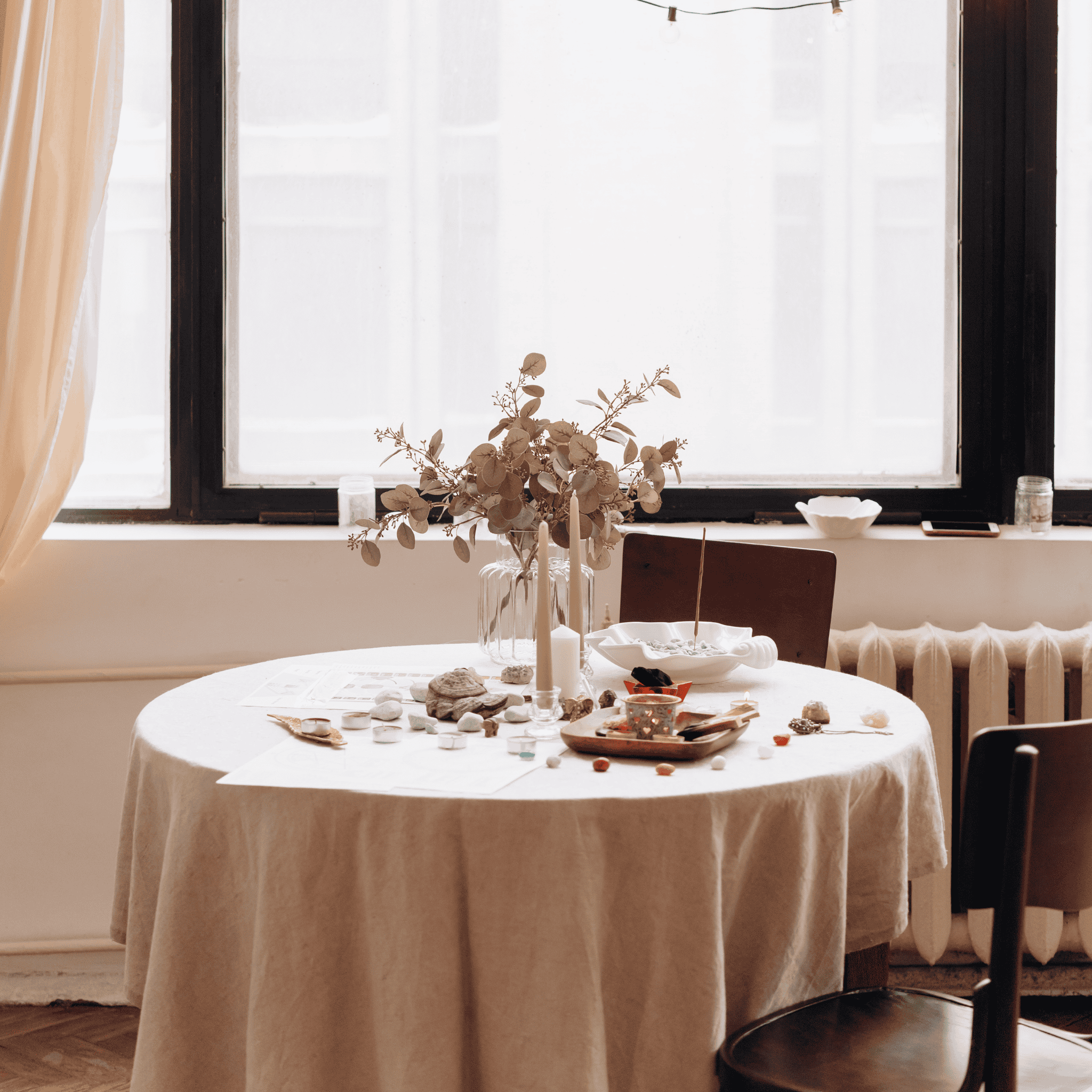 ห้องสไตล์มินิมอล: เลือกผ้าปูโต๊ะสีขาว หรือ ครีม เรียบๆ ไม่มีลวดลาย